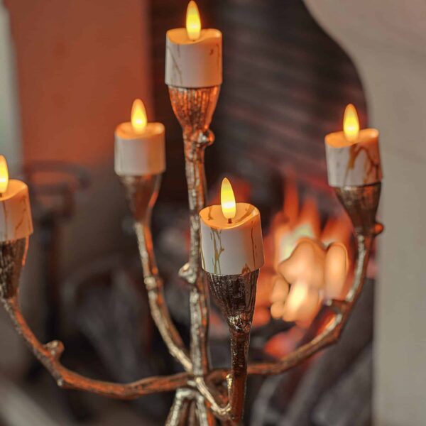 Luksusowe podgrzewacze 3D DORSETTO wyróżniają się eleganckim, marmurkowym złotym wykończeniem oraz realistycznym płomieniem, który wygląda jakby „unosił się” nad czarnym trzpieniem. Daje to ciepły i stylowy efekt, niemal nie do odróżnienia od prawdziwych tealightów.