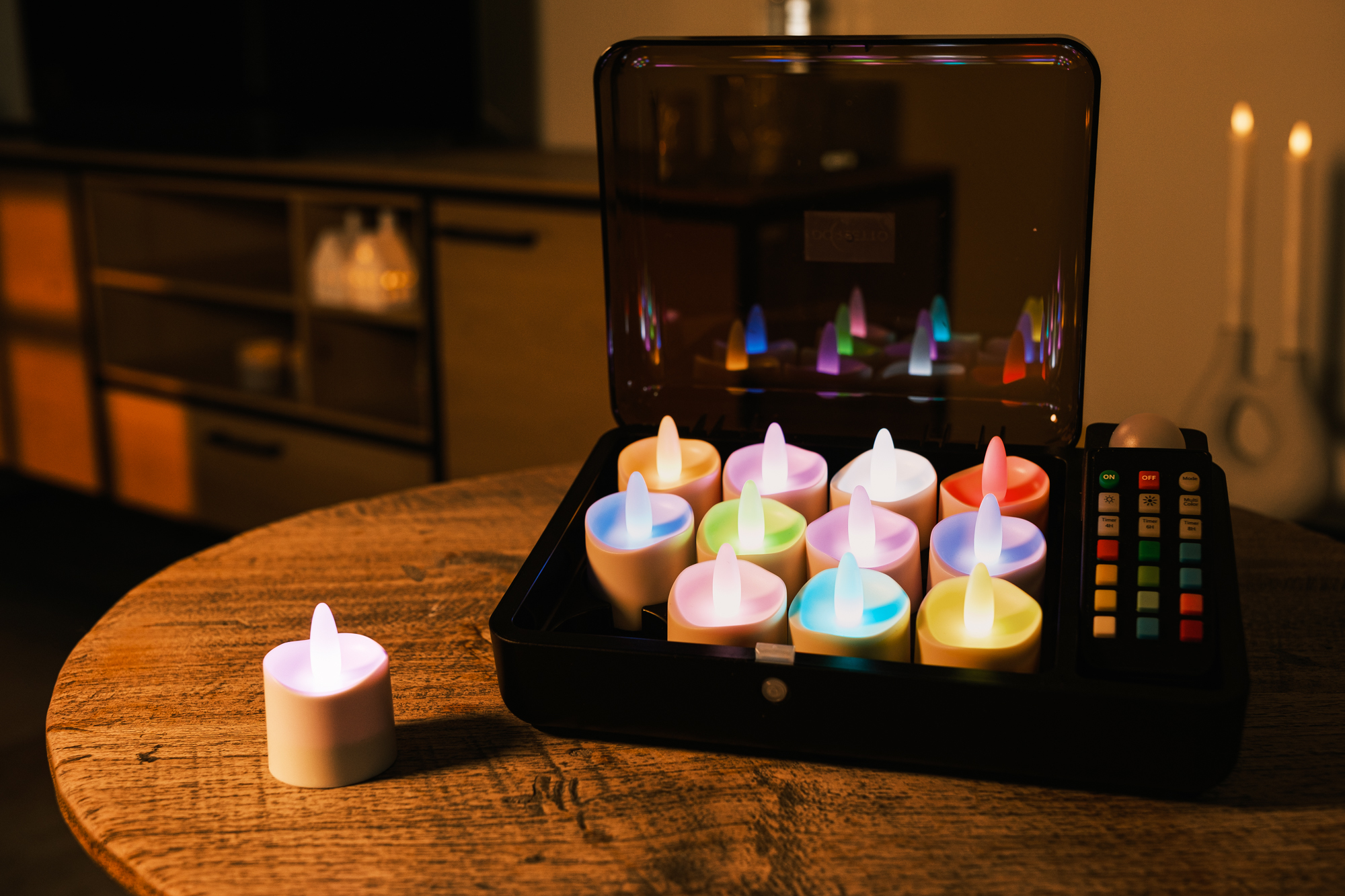 Poznaj odświeżoną wersję podgrzewaczy LED RGB marki DORSETTO. Ten zestaw 12 ładowalnych tealightów tworzy klimat w każdej przestrzeni dzięki wyborowi 12 kolorów oraz wielu programów świetlnych. Delikatny efekt świecenia i równomierne rozłożenie barw sprawiają, że zestaw świetnie sprawdza się zarówno w gastronomii, jak i w domu.